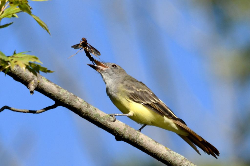 The birds are quite hungry and they are fattening up for the outbound migration. We were very entertained by a Flycatcher who played with what looks like a hornet, before eventually finishing it off.