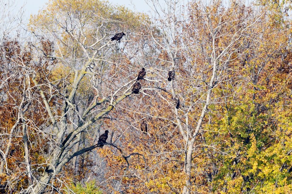 Families of Bald Eagles take up temporary residence in the marsh, staying months while the fishing is good.