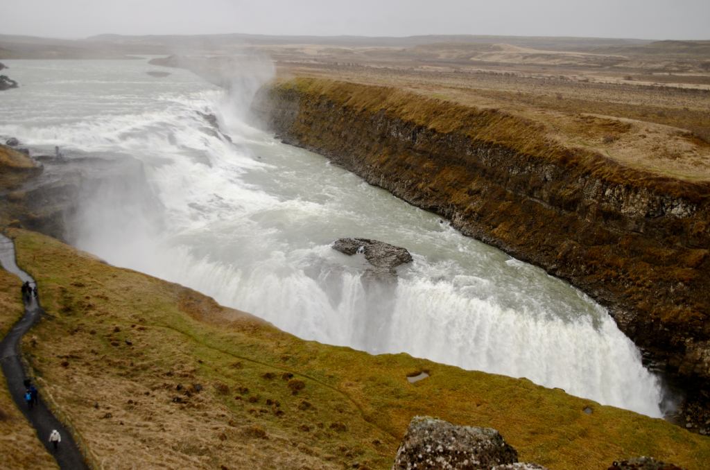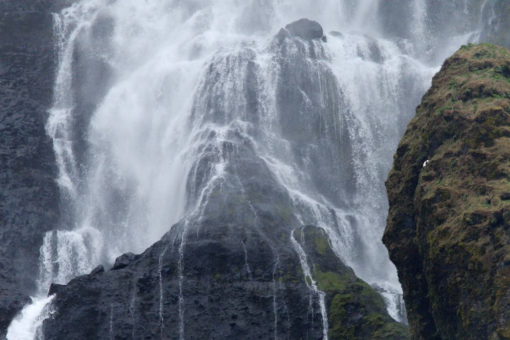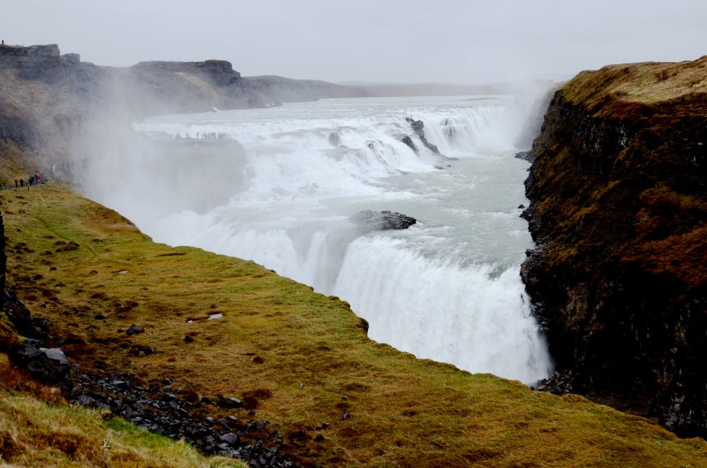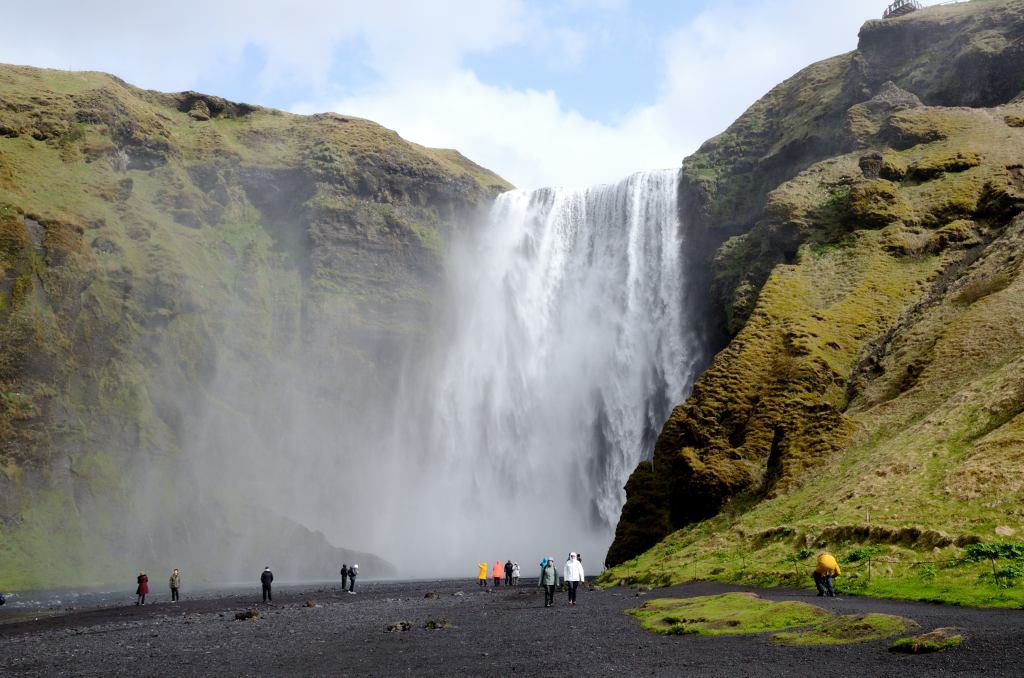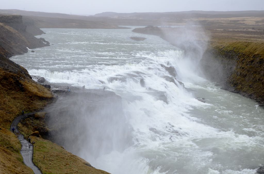In we go and quickly got to the classic location where we could see both the waterfall and the mountain before the winds, fog and rain chased us away.