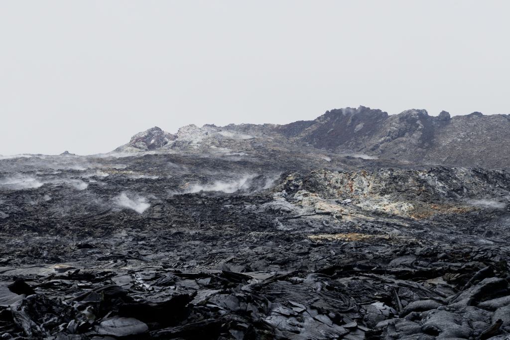 The weather proved difficult to work with, but we were able to see some pretty “hot stuff” and to land at the very edge of a lava field from an eruption from 1 year ago.