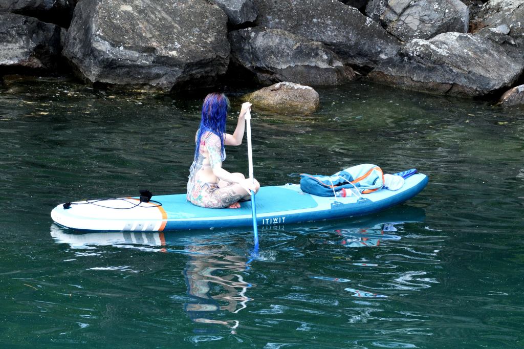 We were tired after a very full day of touring, and after finishing the laundry my poor Lady wanted to go to sleep. I pleaded with her to come with me to the river (where it was darker), but she really was tired. Eventually I was able to persuade her to come with me, and as I led her while she sleep walked, she let me know that she was not pleased.