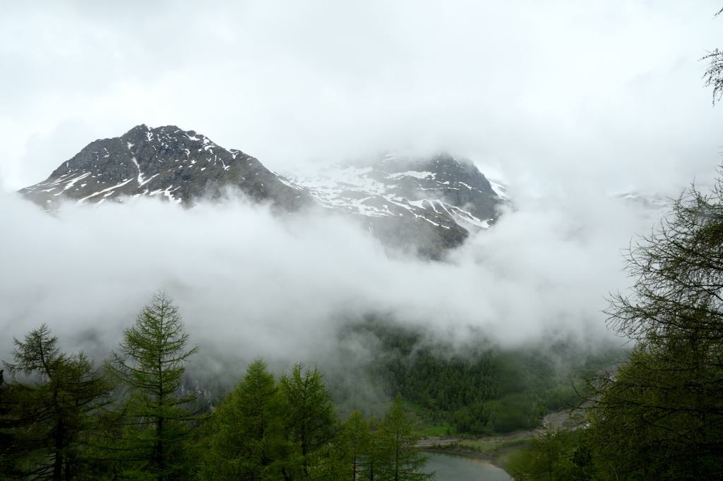 After far too long with My Lady curled up in a nervous ball on the seat beside me, I asked her to take a couple of quick photos before we finally dropped below the fog line and back into some semblance of visibility.