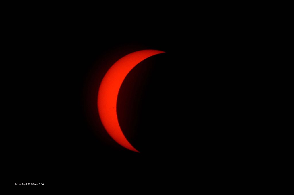 So 2024 was an amazing year for people who enjoy looking at the sky. The sun has been very “dirty” with sunspots throughout the year, and I have really enjoyed getting some shots of it. Then of course we had the major event of the spring (perhaps a lifetime) with the Total Eclipse in April. In May we had the Aurora that sadly we stayed in bed for, followed up with the August aurora that we fortunately had a chance to see. Did you know that in October we had another aurora? This one I am calling a MAJOR EVENT, perhaps even going so far as calling it an AURORAGASM (surely better than sex?). I have never seen anything like it before, and one young lady in our group was in such awe that she said “It’s so beautiful I feel like crying!” I’ve been asked if the actual views were as good as the photos, and all I can say is that once our eyes were adjusted to the dark, all the colours were easily visible. So even while the camera was taking 8 second long exposures, I was still able to observe and enjoy. At one point the sky was Red all the way over our heads. Wait until you see the photos below. And just a week after that we were able to see Comet A3 with our naked eyes (it was difficult, but once you knew where to look it became easier). The photos look better as I took a number of photos a few seconds long each, then stacked them to really show what the tail looked like. And we can’t forget the previously mentioned Partial Lunar Eclipse