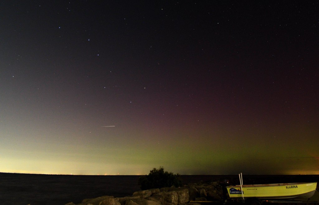 Knowing that the best viewing would be to the north, My Lady and I jumped into our vehicle and headed to the north end of the county, along the shore of Lake St. Clair, and waited as darkness fell and our eyes adjusted.
