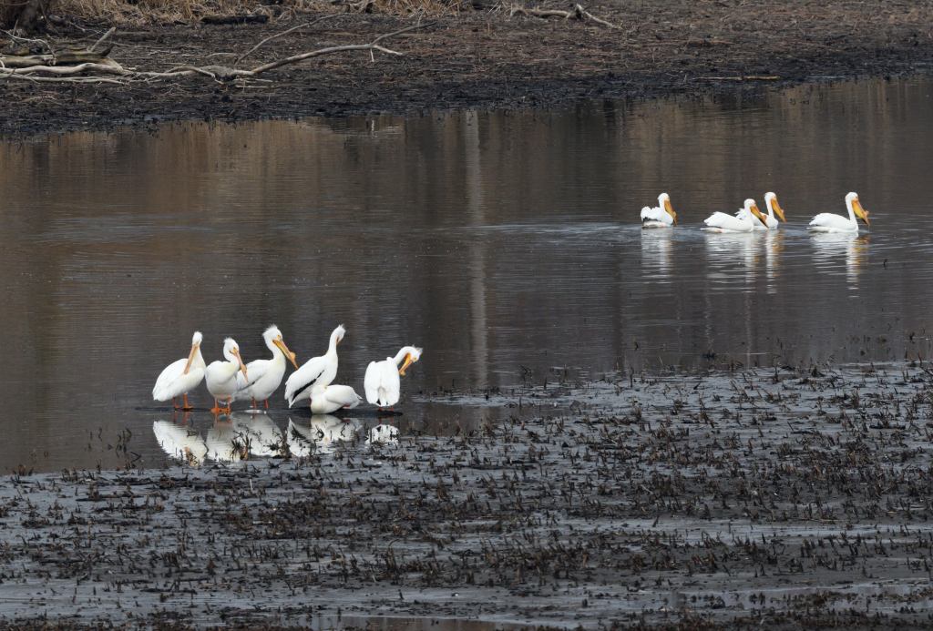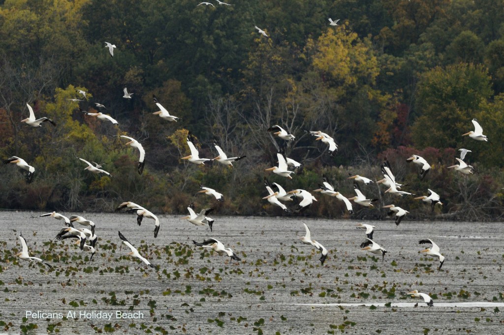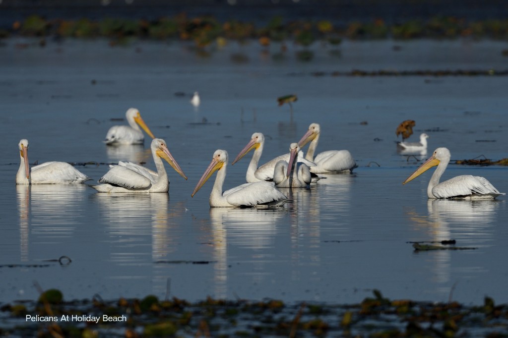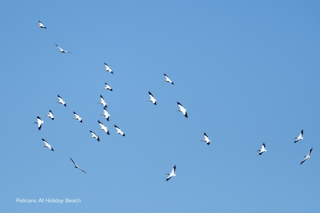 It took a little while longer this year for the Pelicans to return to Holiday Beach, but it’s nice to be able to say that they are making their way through with a bit of a stopover here. Sadly the marsh is at its lowest water since before we moved down, and all of the birds are having a harder time finding food. This includes the Pelicans. There have been a few days where they weren’t seen at all after their earlier arrival.