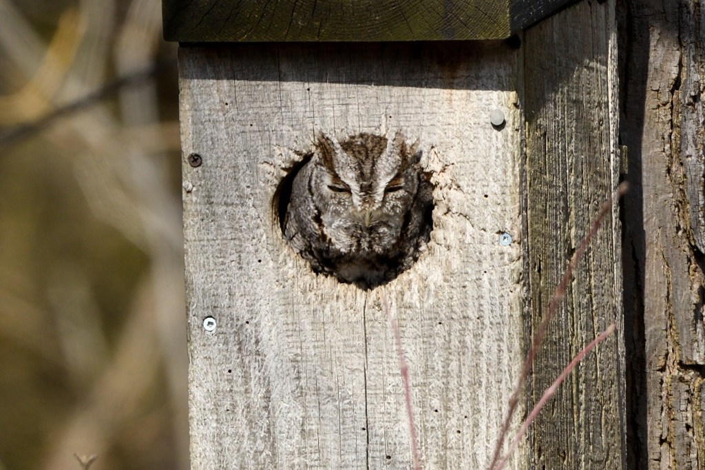 A couple of weeks later another friend pointed out a Screech Owl sitting in a box.