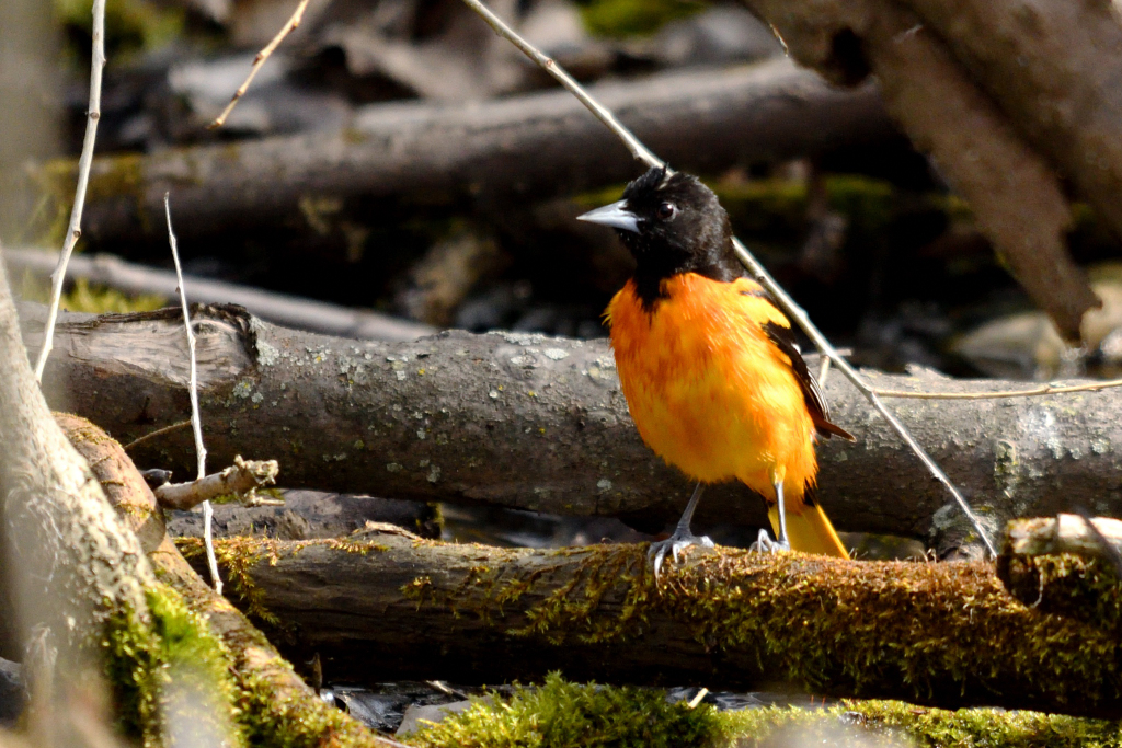 Very expensive Baltimore Oriole demanding fresh oranges and Grape JellyNot so demanding House Finch also wants the Grape Jelly