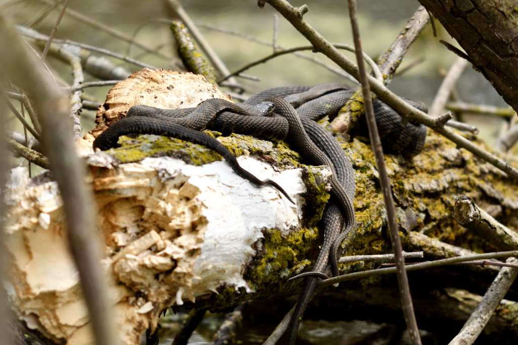 Beyond the warblers, we found a Blue Headed Vireo and an uncommon White Eyed Vireo. We were entertained by bathing male and female Redstarts and a male Baltimore Oriole. We found a couple of Blue Grey Gnatcatcher nests. Indigo Buntings were appearing in rich blues, Kingbirds, Kinglets and Flycatchers were feasting on the bugs, Hummingbirds were showing off their Ruby Throats, Snakes were gathering in the warming sunlight, and Osprey were hunting over the marsh. Robins had set up their nesting areas and were already gathering food for the young. We finally got to see a Blackpoll Warbler, something we have been trying to photograph since learning about it.