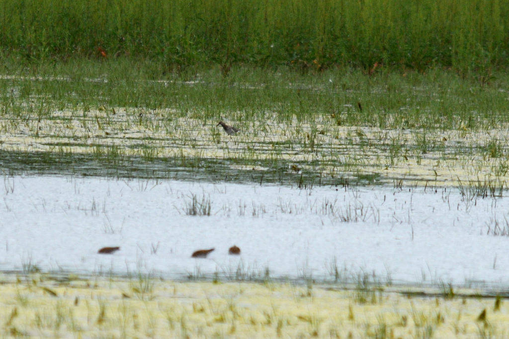 Another special rarity, a Marsh Sandpiper, didn’t get into our area but was a couple hour’s drive north in the town of Thedford Ontario, hanging out in a sewage lagoon. Not only was the bird that far away, but when we arrived we found that it was staying way out on the other side of the lagoon, and we were restricted from getting too close for fear of spooking it and having it fly off.