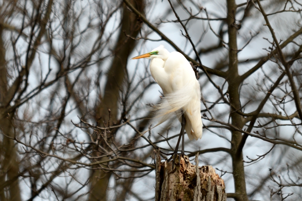 I happened upon an Egret at Holiday Beach close to the edge of the water, in the shade with sunlight in behind. It was a male, preening his breeding plumage. I sat at the edge of the marsh and made myself comfortable. I didn’t have long to wait. Within 2 minutes he stretched himself out and the magic happened. After a few seconds, it was all finished. I chimped the camera and felt elated! This time I got decent photos of the feathers being spread in the sunlight.